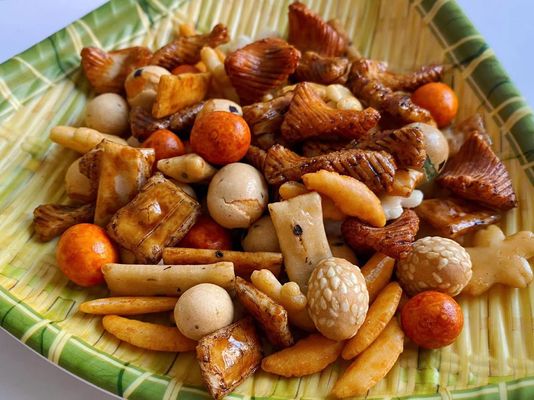 Ρύζι, φυστίκι, άμυλο ταπιόκας, άμυλο, δεξτρίνη Malto, ζάχαρη, σάλτσα σόγιας, άλας, φύκι, E160c, E150c