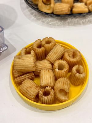 Περιγραφή: Γλυκά και τραγανά ψητά κρέικ ρυζιού, ιδανικά για σνακ.